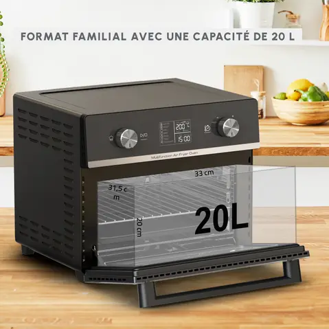 Grande capacité : 20 L, idéale pour 6 personnes (pizza 30 cm, poulet rôti, 6 tranches de pain, etc.)