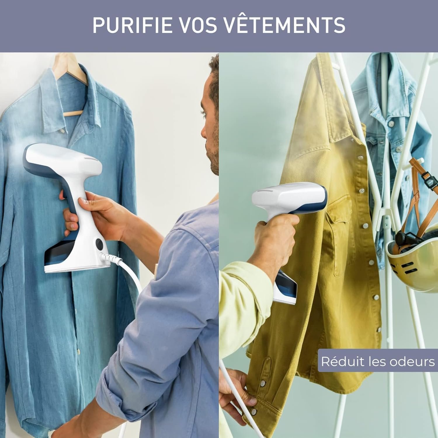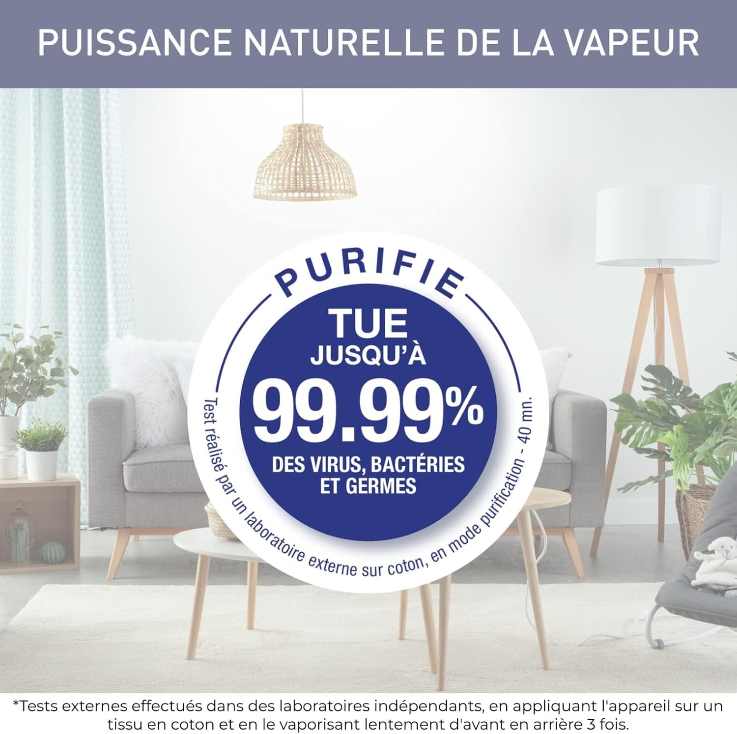 Assainit efficacement : élimine jusqu’à 99,99 % des virus et bactéries* pendant le défroissage.