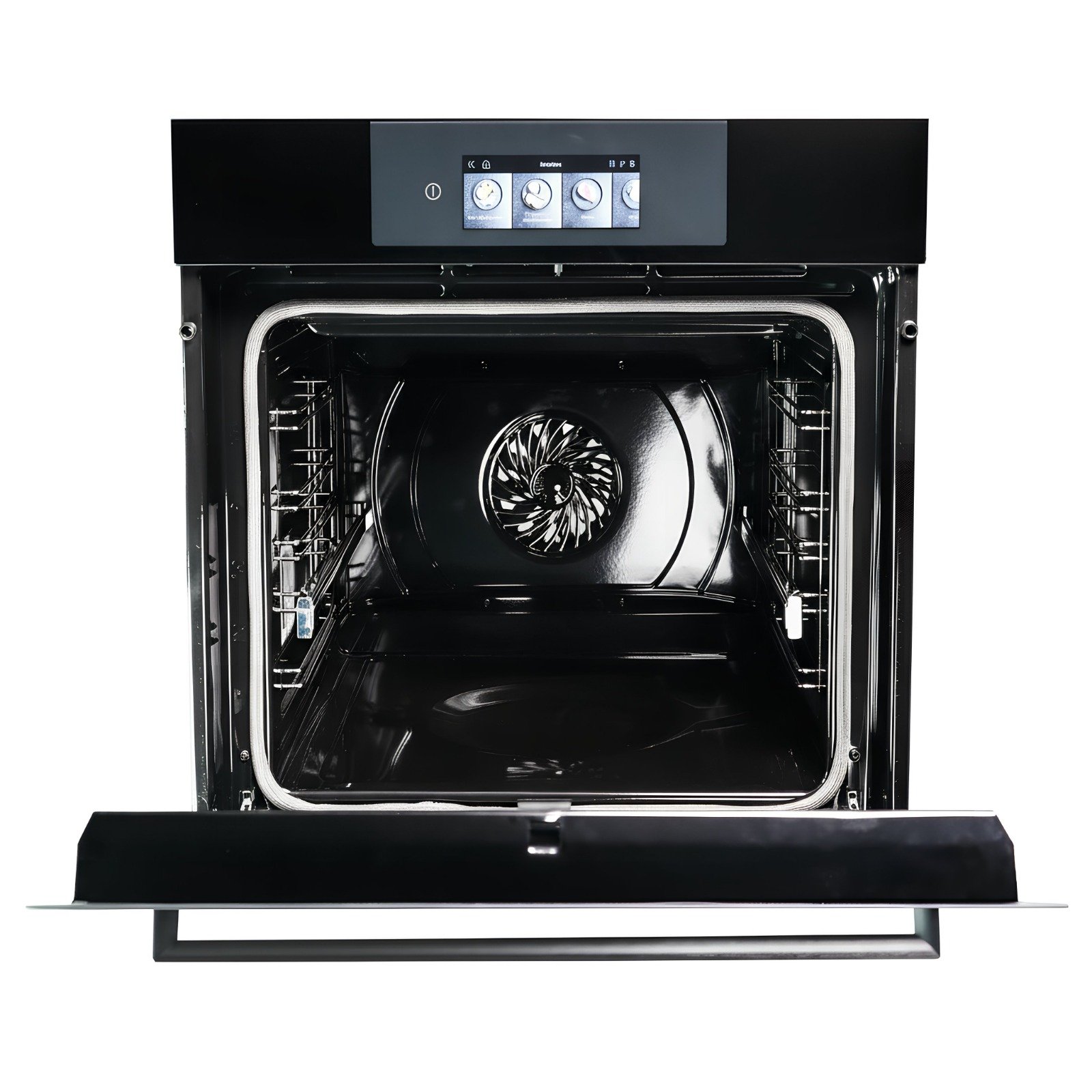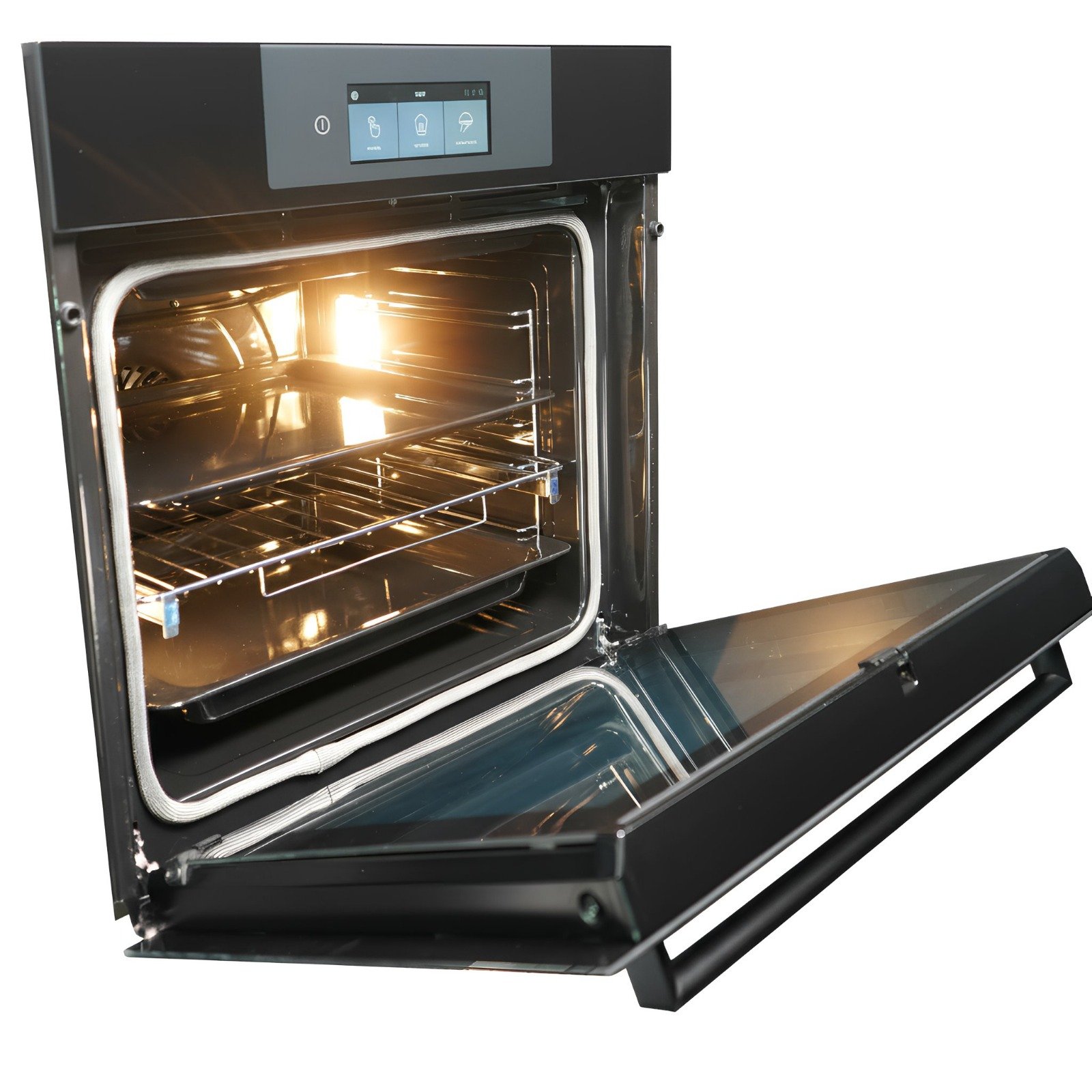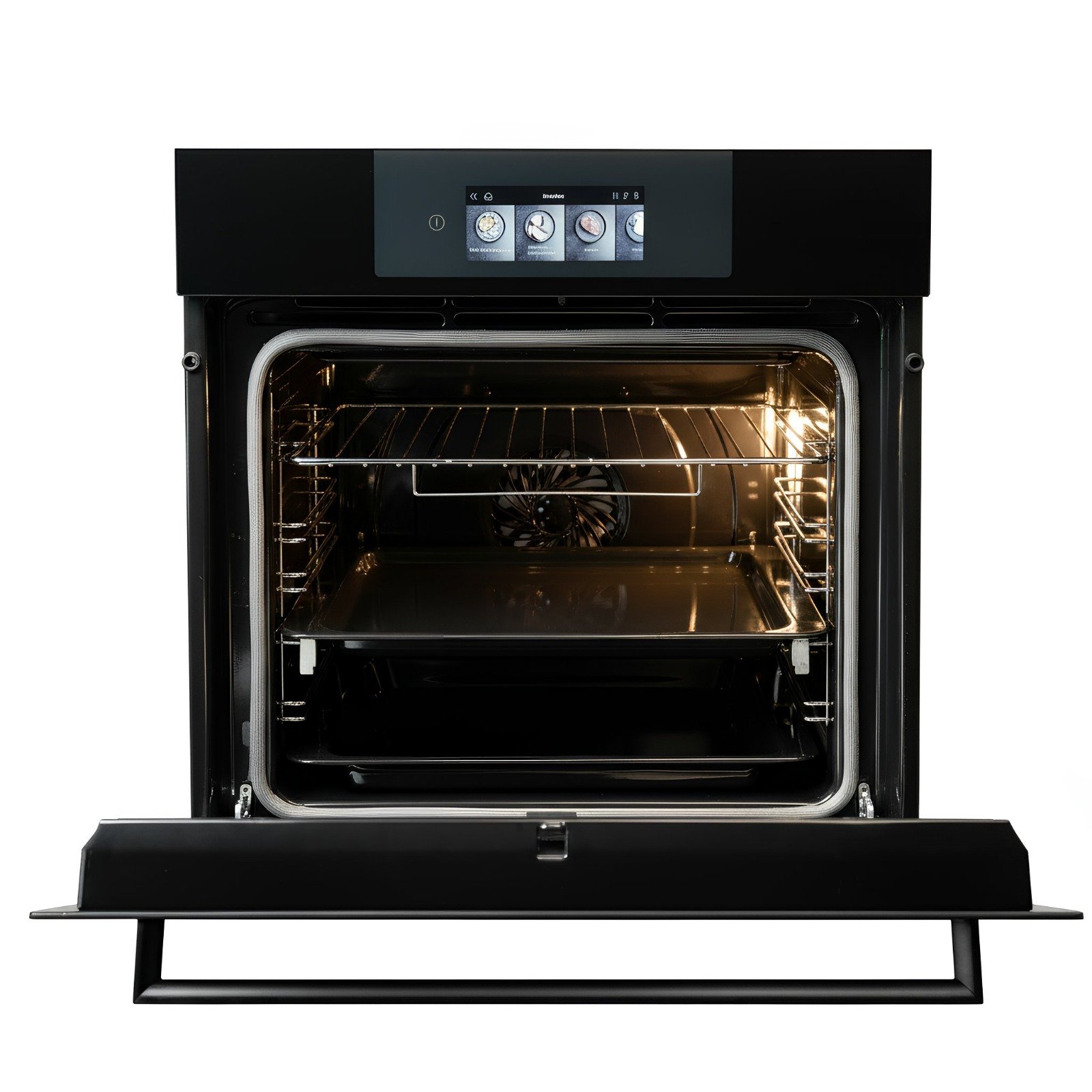 Le four Candy Black Glass allie élégance et performance avec sa grande capacité de 70L et son écran TFT intuitif pour une utilisation facile. Équipé de rail télescopique et Soft Close, il assure confort et sécurité lors de l’ouverture et de la manipulation des plats. Avec ses 14 fonctions, dont gril, super gril, turbo gril, chaleur tournante, chaleur pulsée, sole et sole brassée, il permet de réaliser toutes vos recettes, du pain aux plats gourmands comme la paella, et même la décongélation. Le four propose également des recettes intégrées et la fonction levage à 40°C pour les produits de boulangerie, ainsi que des programmes Pyrolyse Éco et Pyrolyse + pour un nettoyage simple et efficace. Ses deux plateaux, triple vitrage et classe énergétique A+ garantissent une cuisson homogène, sécurisée et économique.