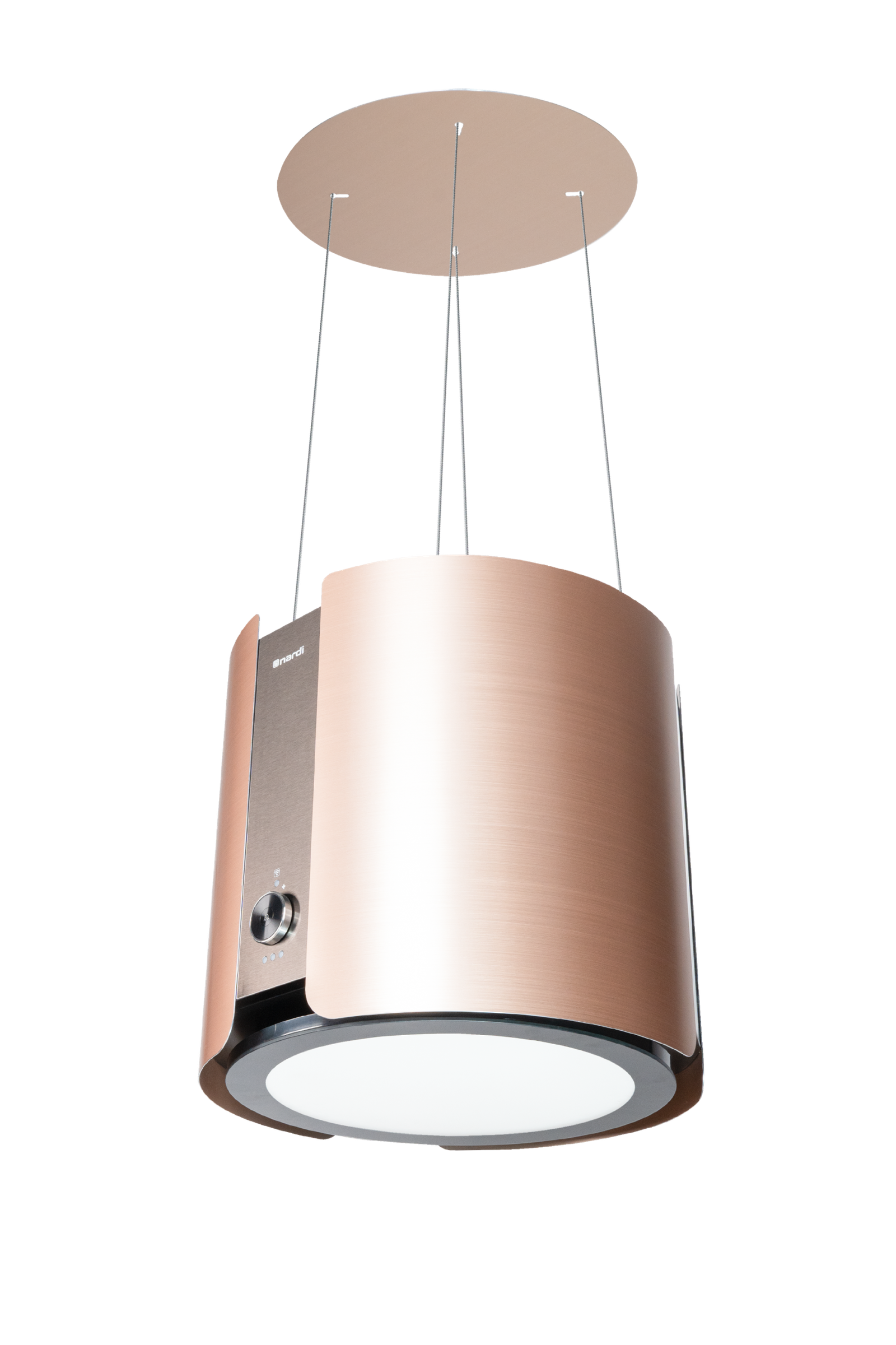 Hotte îlot 45 cm au design compact et à la finition aluminium dorée élégante et lumineuse, idéale pour sublimer une cuisine moderne. Elle offre une puissance d’aspiration de 450 m³/h, assurant un air toujours frais.